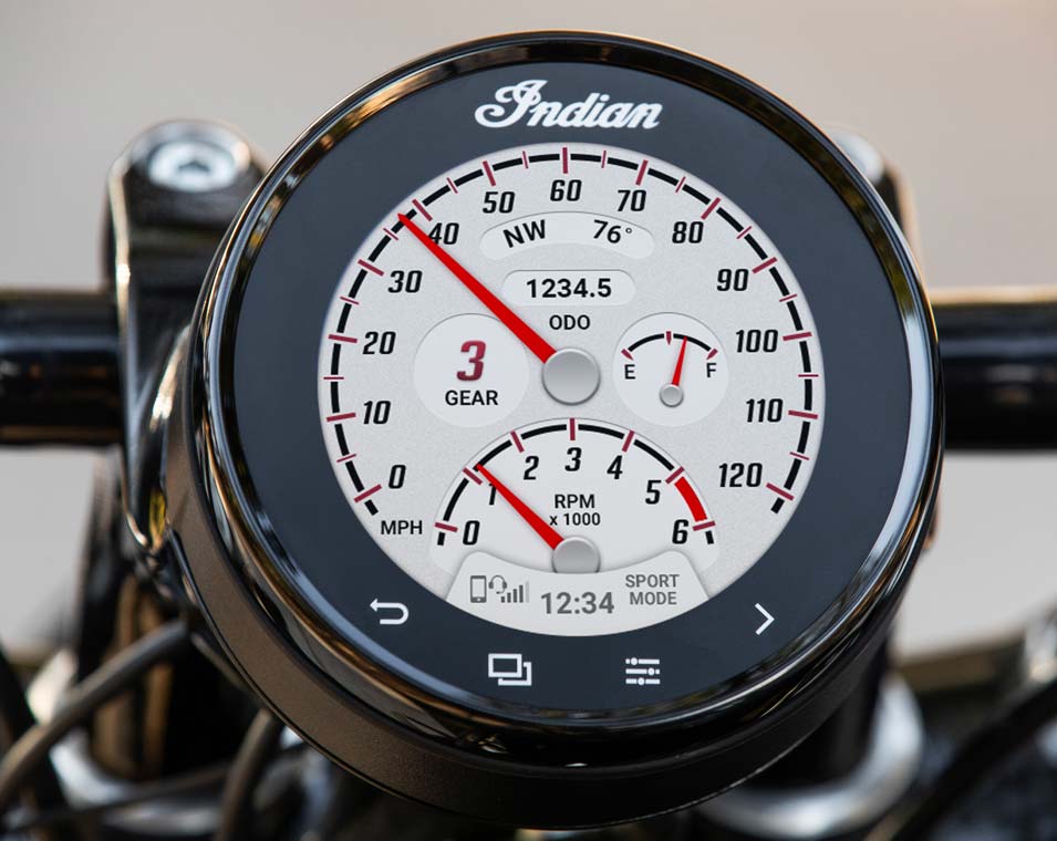 O detalhe do design associa-se ao funcionamento moderno com o visor de 4" com RIDE COMMAND, líder na indústria. Desfruta de navegação GPS, conectividade Bluetooth®, estatísticas de condução e muito mais para otimizares a tua experiência de condução. Ou melhor ainda, desfruta do RIDE COMMAND+ pré-instalado, que oferece localizador de motociclo, estado do motociclo e mais, para que te manteres conectado e informado (as características e conectividade variam conforme a localização).