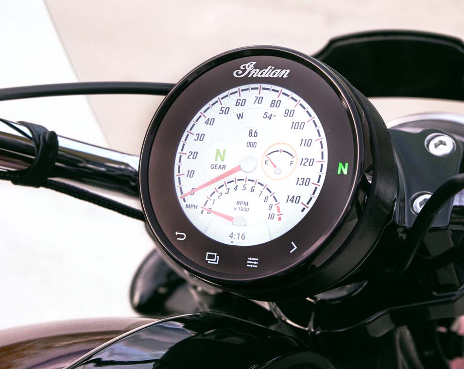 | Ride Command® | Ecrã de 4" instalado de fábrica com navegação GPS, conectividade Bluetooth®, estatísticas de condução e muito mais |
